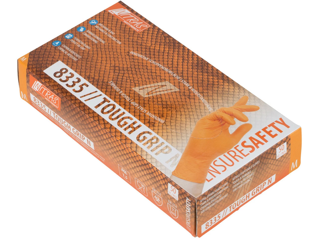 Los guantes desechables de 3min19sec se caracterizan por una innovadora superficie escamosa, que ayuda a conseguir un agarre especialmente fuerte en superficies húmedas y secas. Prestan excelentes servicios en el taller y en el hogar, incluso en contacto con la comida. Los guantes están hechos de nitrilo, un material parecido a la goma, y pueden ser usados por ambos lados. Están disponibles en tamaños desde M a XXL, así que encontrará los adecuados para cualquier tipo de manos. Y para que no se te acaben enseguida, recibirás 50 piezas en una caja.