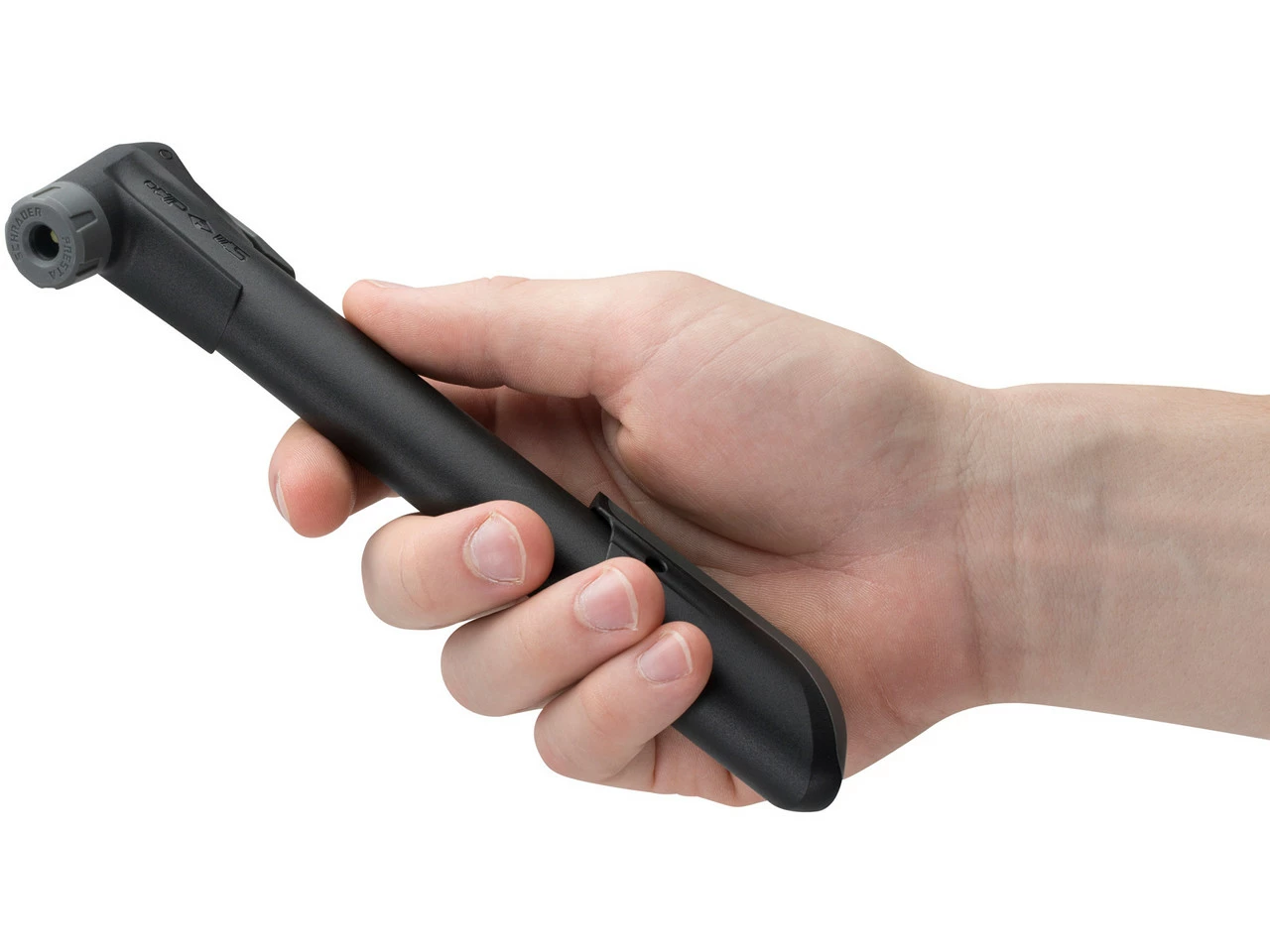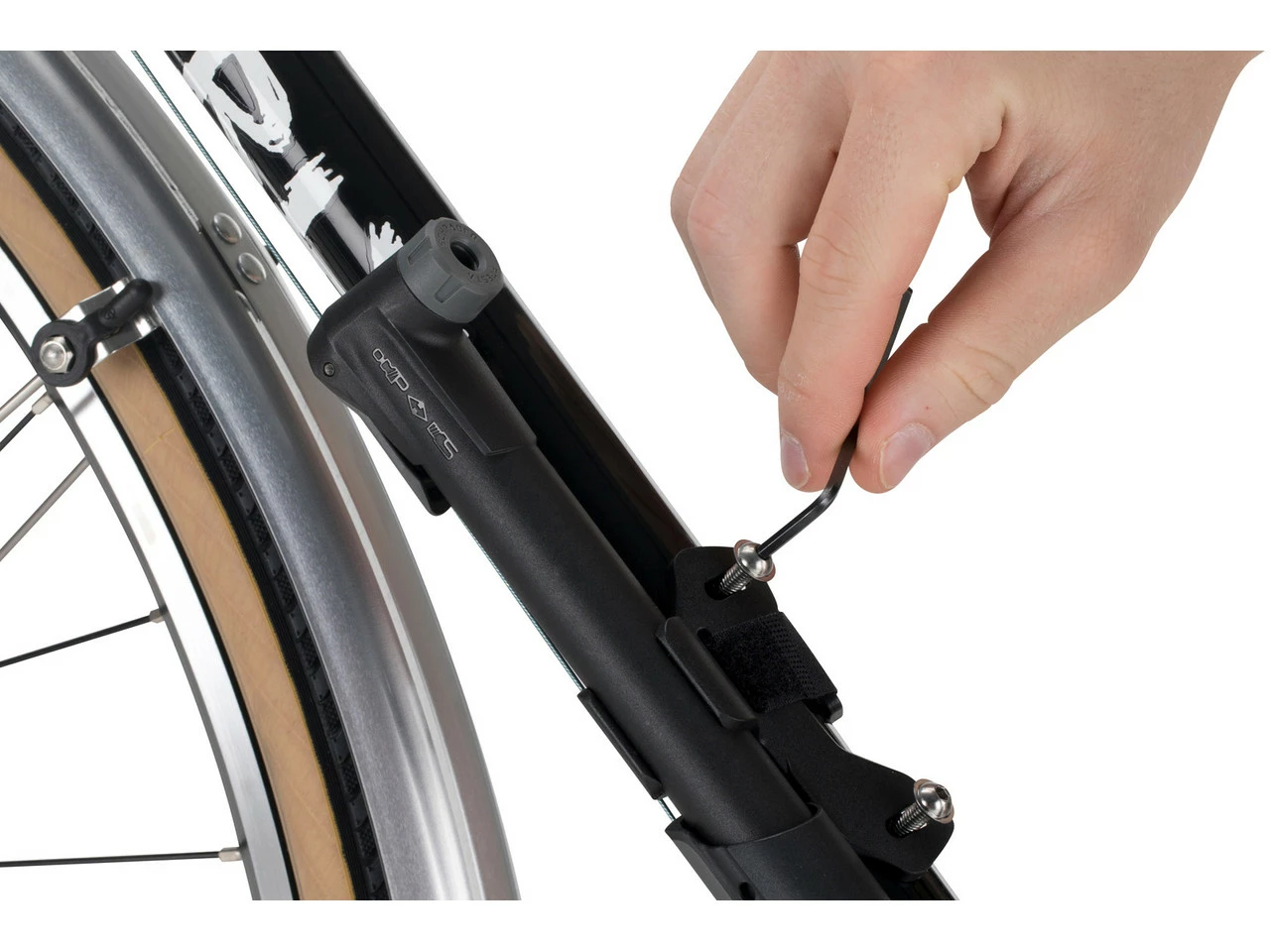 La mini bomba de 3min19sec es una compañera compacta y práctica para tus excursiones. El cabezal de bomba inteligente puede ser usado con válvulas Schrader y Presta. Una robusta palanca de plástico proporciona la estabilidad necesaria durante uso, por lo que se puede generar una presión máxima de 8,3 bar. Y el práctico soporte te permite montar la bomba junto a tu portabidones ahorrándote así tener que llevar una mochila.