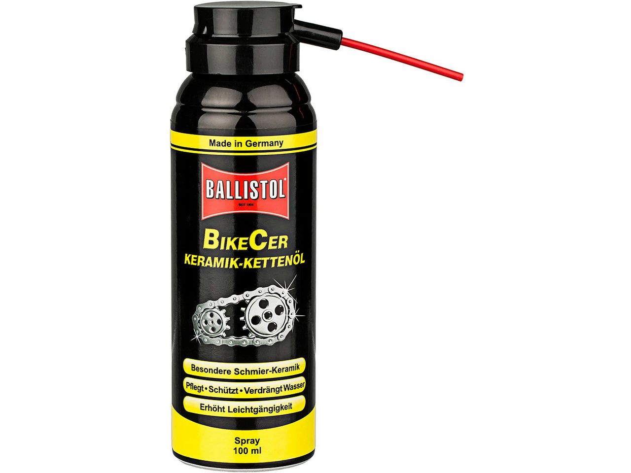 Denominación:Keramik-Kettenöl BikeCer-SprayCampo de aplicación:LubricanteCaracterísticas:Aceite para cadenas cerámicacontiene un aditivo cerámico especialmantieneprotegedesplaza el aguaaumenta la suavidad de rodajeel cuidado de lujo para cadenas, cassettes y el piñones, pero también para todos los demás componentes de la bicicletalibre de silicona, PTFE, ácido y resina, no se endureceMás detalles según el producto:65 ml: