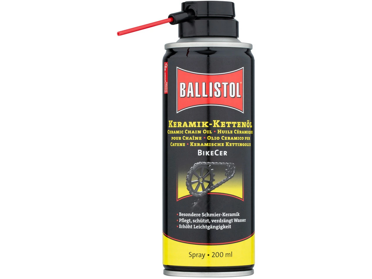 Cantidad nominal:200mlTipo de embalaje:AtomizadorNúmero de fabricante:28059Volumen de envío:1 x Aceite para cadenas Ballistol BikeCer