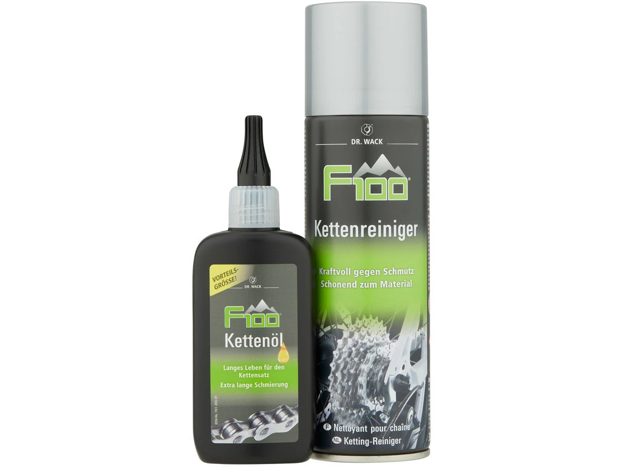 Limpiador de cadenas F100Aceite de cadenas F100Volumen de envío:1 x Limpiador de cadenas Dr. Wack, 300 ml1 x Aceite de cadenas Dr. Wack, 100 ml