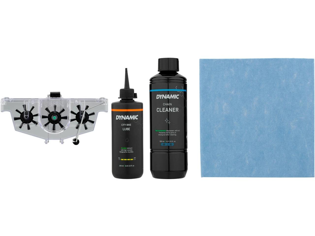 Volumen de envío:1 x Limpiador de cadenas Dynamic, 500 ml1 x Aceite de cadenas Dynamic, 250 ml1 x Dispositivo de limpieza de cadenas Dynamic1 x Paño de limpieza1 x Caja de almacenamiento