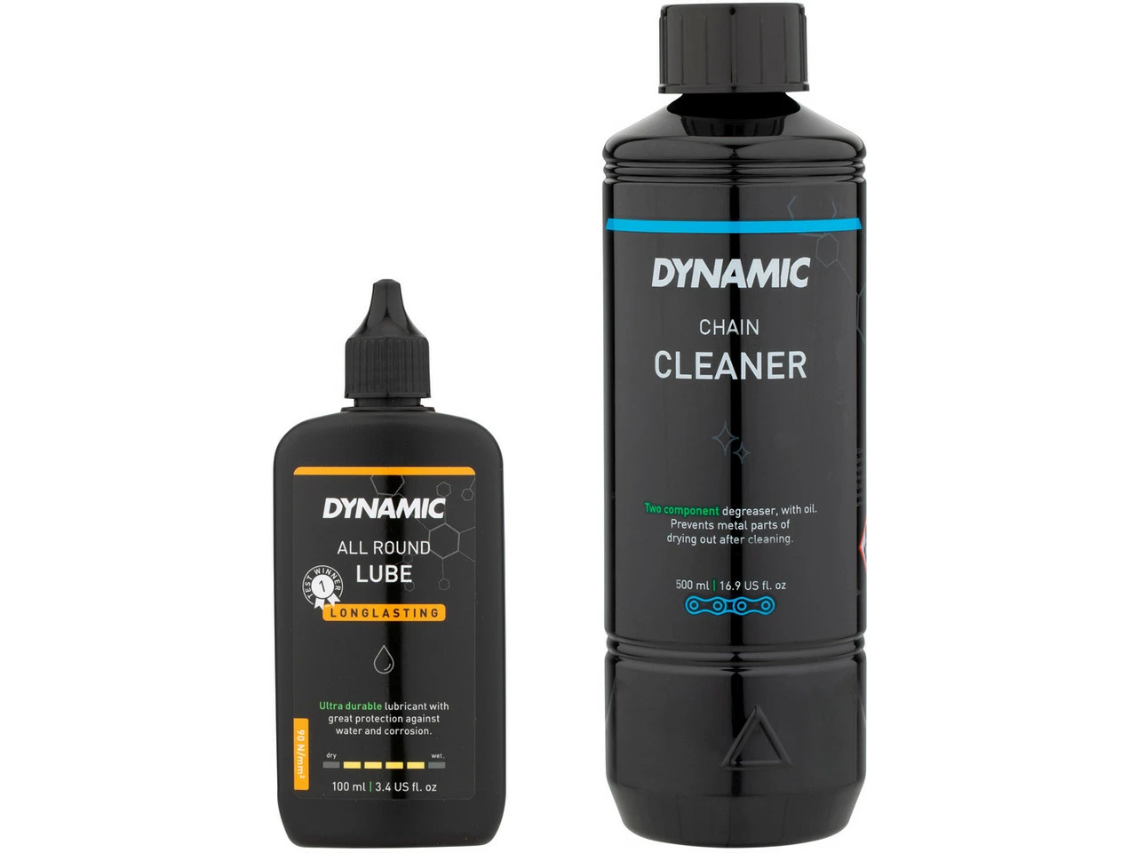 El set de cuidado de cadena de Dynamic limpia y mantiene la cadena y los demás componentes de la transmisión. Consta de el limpiador de cadenas y el lubricante de cadenas de Dynamic.