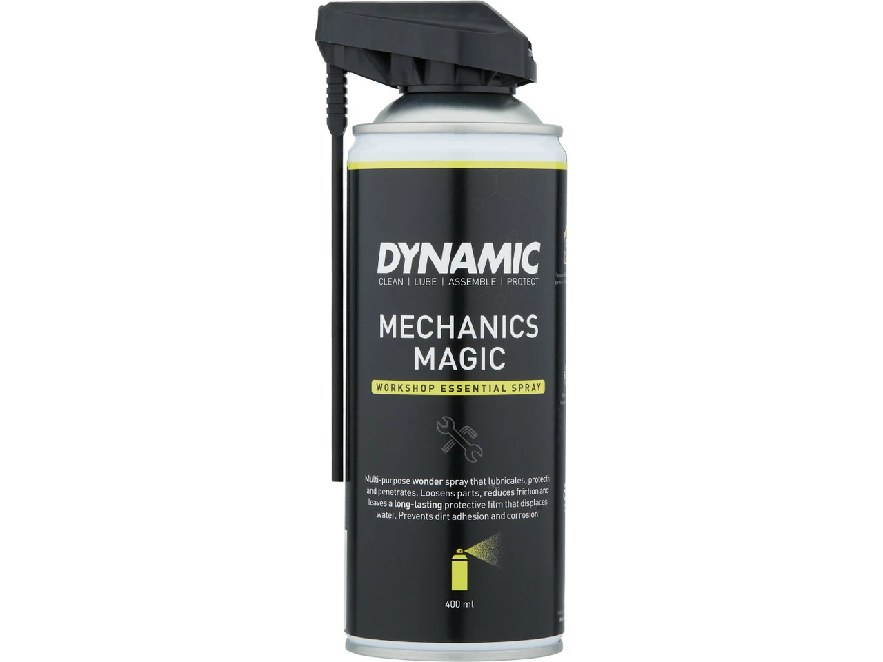 El spray para bicicletas Mechanics Magic de Dynamic protege, mantiene y lubrica las partes móviles de tu bicicleta durante mucho tiempo. Incluso las piezas atascadas se vuelven a aflojar gracias a las elevadas propiedades de fluencia.
