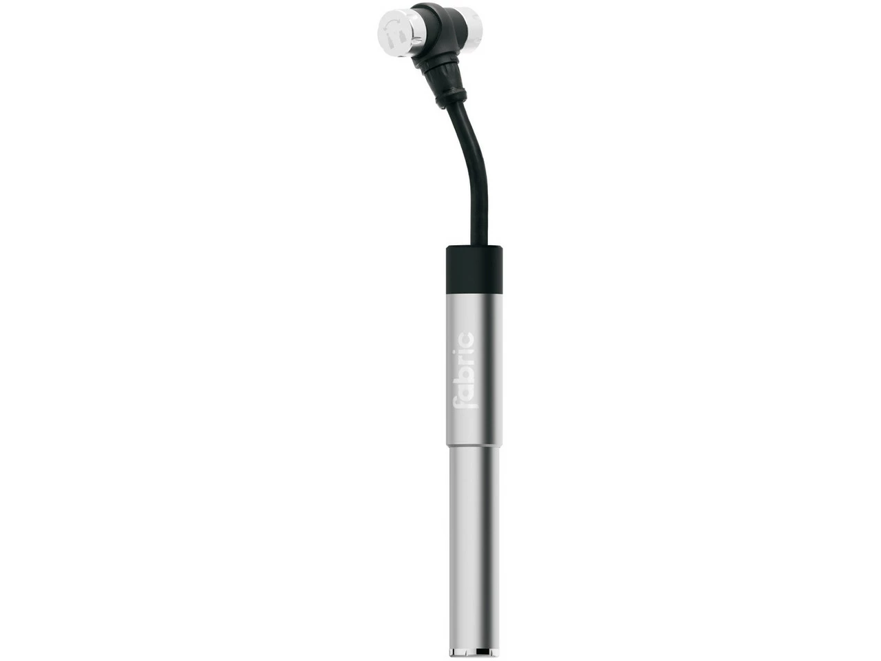 La mini bomba R150 Road Short es ideal para la carretera y tiene mucha potencia a pesar de su pequeño tamaño. Dado que las válvulas se ven sometidas a un gran esfuerzo durante el bombeo, fabric ha pensado en cómo protegerlas. El cabezal de la bomba está unido a una manguera integrada, que ofrece más libertad de movimiento cuando se extrae y reduce al mínimo las vibraciones durante el bombeo. Si se introduce la manguera en la carcasa, se obtiene una mini bomba compacta y práctica que puede guardarse fácilmente en el bolsillo del maillot y que, por lo tanto, es ideal para los desplazamientos.