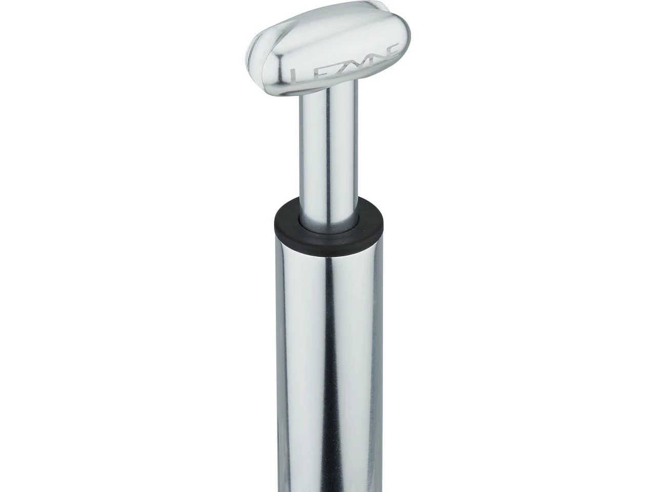La bomba de bicicleta Micro Floor Drive HVG de Lezyne tiene, a diferencia de la bomba Micro Floor Drive HV, un indicador de presión de aire analógico integrado en la manguera. Es fácil de leer y te indica la presión actual en el sistema. La bomba ofrece el rendimiento de una bomba de pie en un diseño compacto y está, como su nombre indica, diseñada para cubiertas de MTB de gran volumen. Puede generar presiones de hasta 6,2 bar. Gracias al accesorio ABS-Flip-Thread-Chuck reversible con función de liberación de aire, el modelo puede utilizarse tanto para válvulas Schrader como Presta. Combina un ligero cuerpo de aluminio con un práctico puño en T, también de aluminio. La abrazadera de pie de acero inoxidable abatible proporciona estabilidad durante el bombeo. Se incluye un soporte de plástico adecuado para transportar la bomba en la bicicleta.