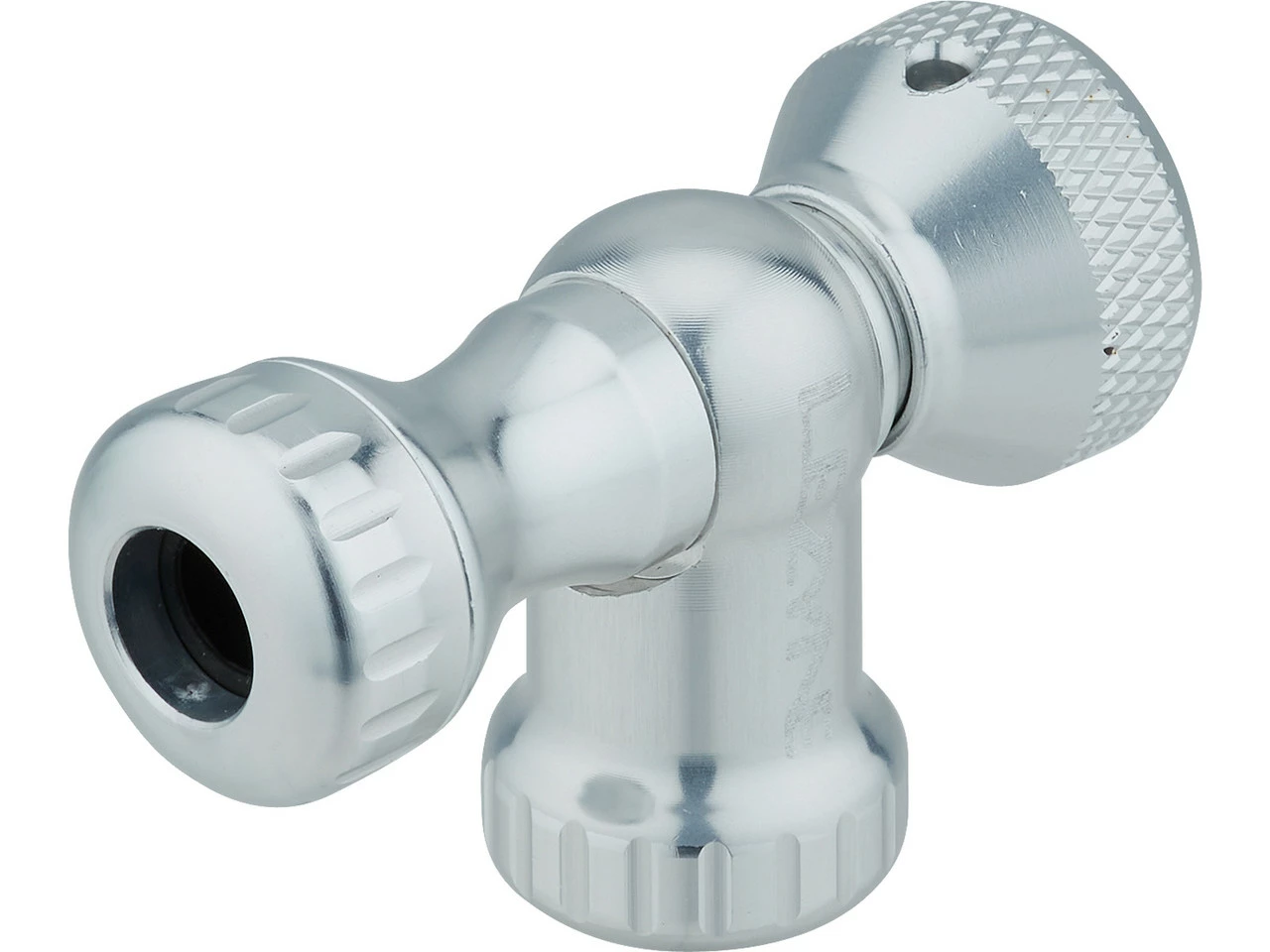 El cabezal de bomba Control Drive CO2, fabricado en aluminio 7075 con tecnología CNC, permite inflar cubiertas de arie con extrema precisión gracias a su válvula con cabezal giratorio.