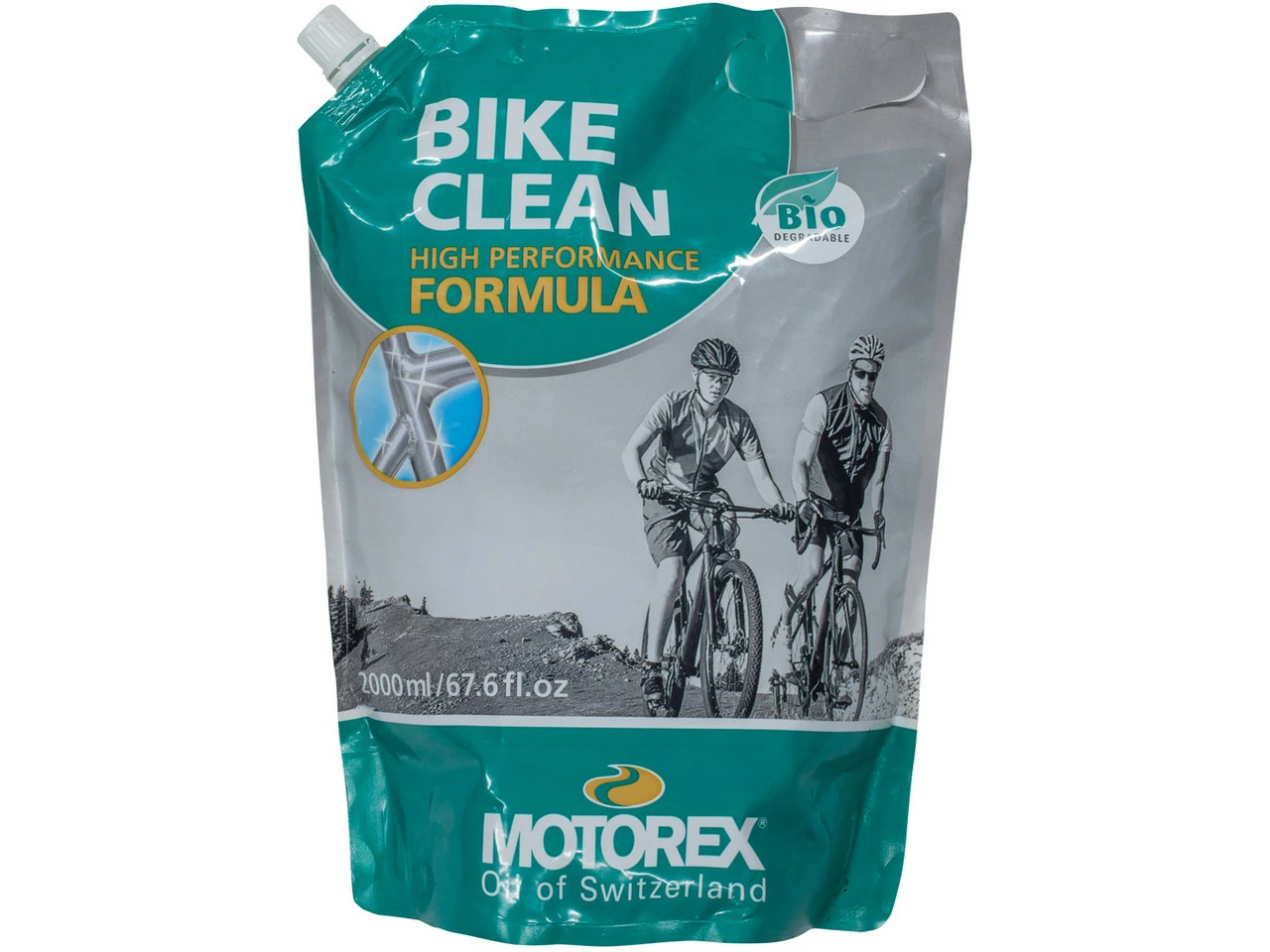 Con el limpiador de bicicletas Bike Clean de Motorex en bolsa , no sólo se protege el medio ambiente gracias a su biodegradabilidad, sino que también se ahorran residuos. Llénala simplemente en un atomizador y utilízalo como limpiador en spray. Si el grado de suciedad de tu bici es bajo, el limpiador también es totalmente eficaz cuando se diluye en agua a una proporción 1:2. De este modo, se protege aún más el medio ambiente. El limpiador es especialmente compatible con el material y, por consiguiente, también adecuado para superficies de carbono.