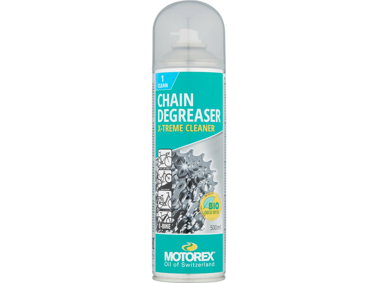 Especificaciones:Denominación:BIKE CHAIN DEGREASER SPRAYCampo de aplicación:Productos detergentesCaracterísticas:biodegradabledisuelve incluso la suciedad más persistente de forma rápida y fiabledesengrasa e incluso disuelve las resinasevaporación sin residuos, sin riesgo de corrosióncorto tiempo de secadosin cloroUso:cubrir el suelo con papel o cartónpulverizar sobre la cadena y las piezas por limpiardejar actuar brevemente, tratar con un cepillo en caso de exceso de suciedaddejar que el limpiador se escurra y volver a aplicarlo de ser necesariodejar secar completamenteIndicación del fabricante:Motorex Bike Chain Degreaser desengrasa fuertemente. Por lo tanto, relubrica las piezas inmediatamente con Chainlube DRY Conditions, Chainlube WET Conditions o con Chainlube Allround.