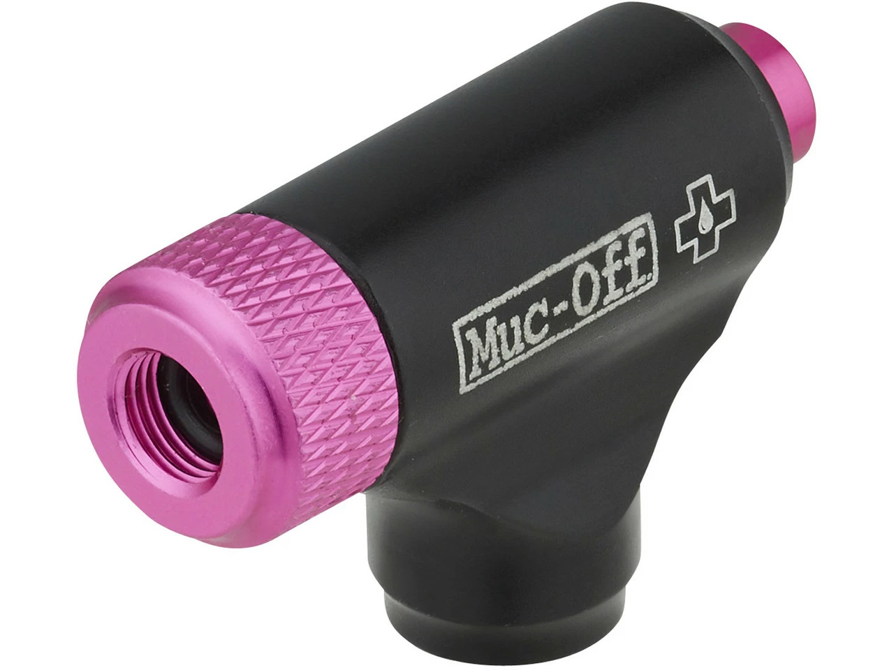 Con la bomba Inflator CO2 de Muc-Off, puedes volver a inflar rápidamente las cubiertas de tu bicicleta de ruta. El cabezal de la bomba se ajusta a dos tipos de válvulas.