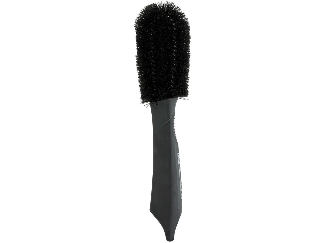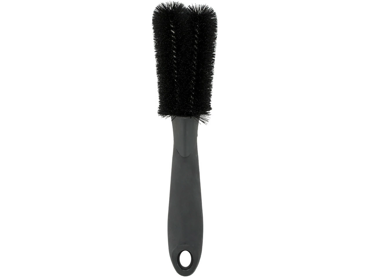 El cepillo 2 Prong (cabezal doble) es ideal para limpiar radios, discos de frenos, amortiguadores y reposapies. Los cabezales se pueden ajustar de forma independiente para poder llegar a los rincones más pequeños. Gracias al mango de goma y a la zona del pulgar con protuberancias adicionales, el tiene un buen agarre en la mano. Además, el revestimiento de goma de los bordes protege contra arañazos y abolladuras.
