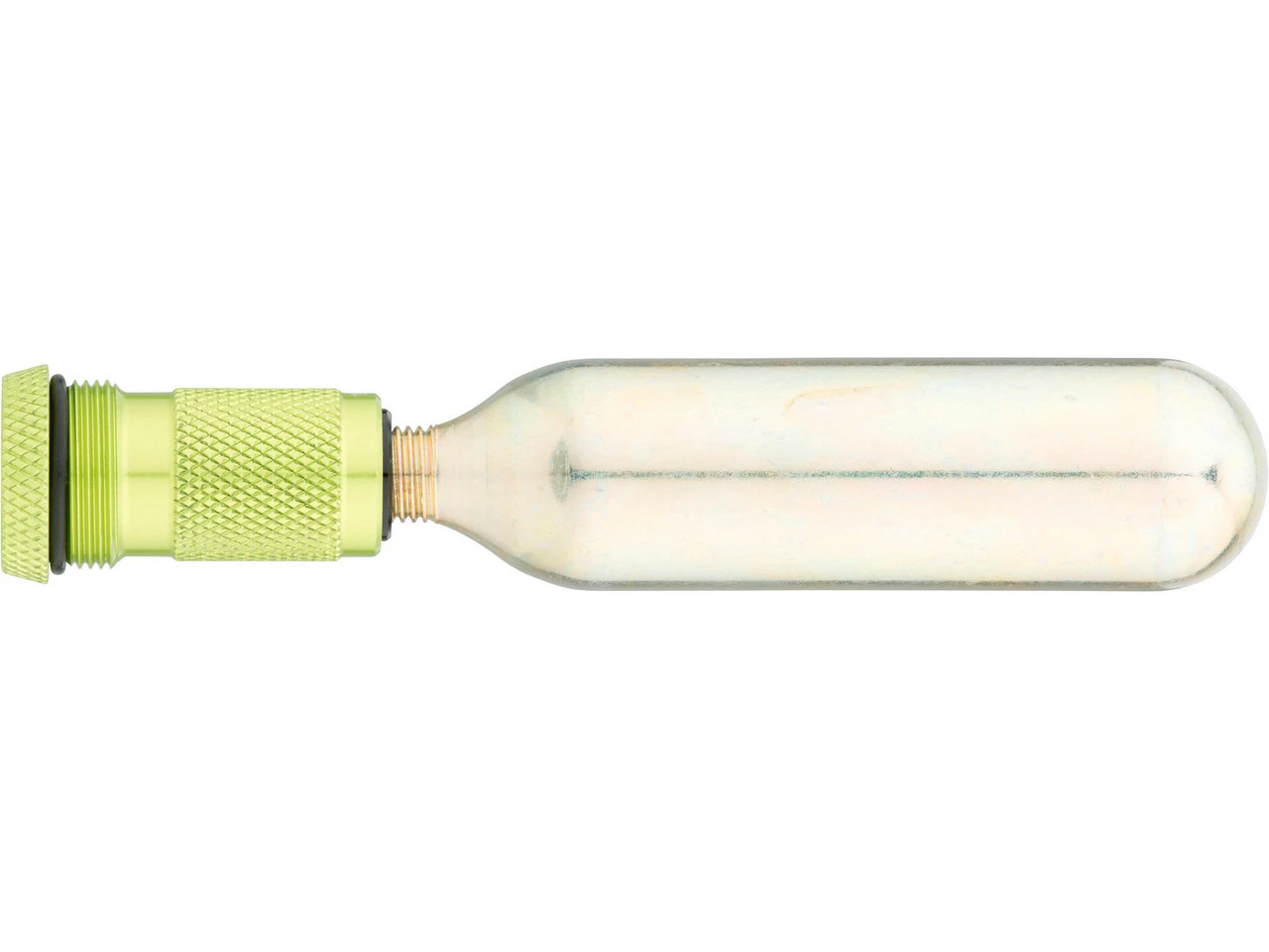 El cabezal de bomba CO2 convierte a tu mini bomba OneUp Components en una bomba de cartucho. Se suministra con las bombas EDC de 70 cc y 100 cc, pero también está disponible por separado como pieza de repuesto. Es fácil de usar: enroscas un cartucho de CO2 en el inflador y lo presionas en una válvula Sclaverand. Gracias al Fast-on-Design, no se utilizan palancas ni roscas. Luego afloja el cartucho media vuelta para iniciar con el flujo de CO2. Cuando lo aprietas de nuevo, detienes el proceso de llenado. Una vez utilizado pon el inflador de nuevo en la bomba para evitar que se pierda.