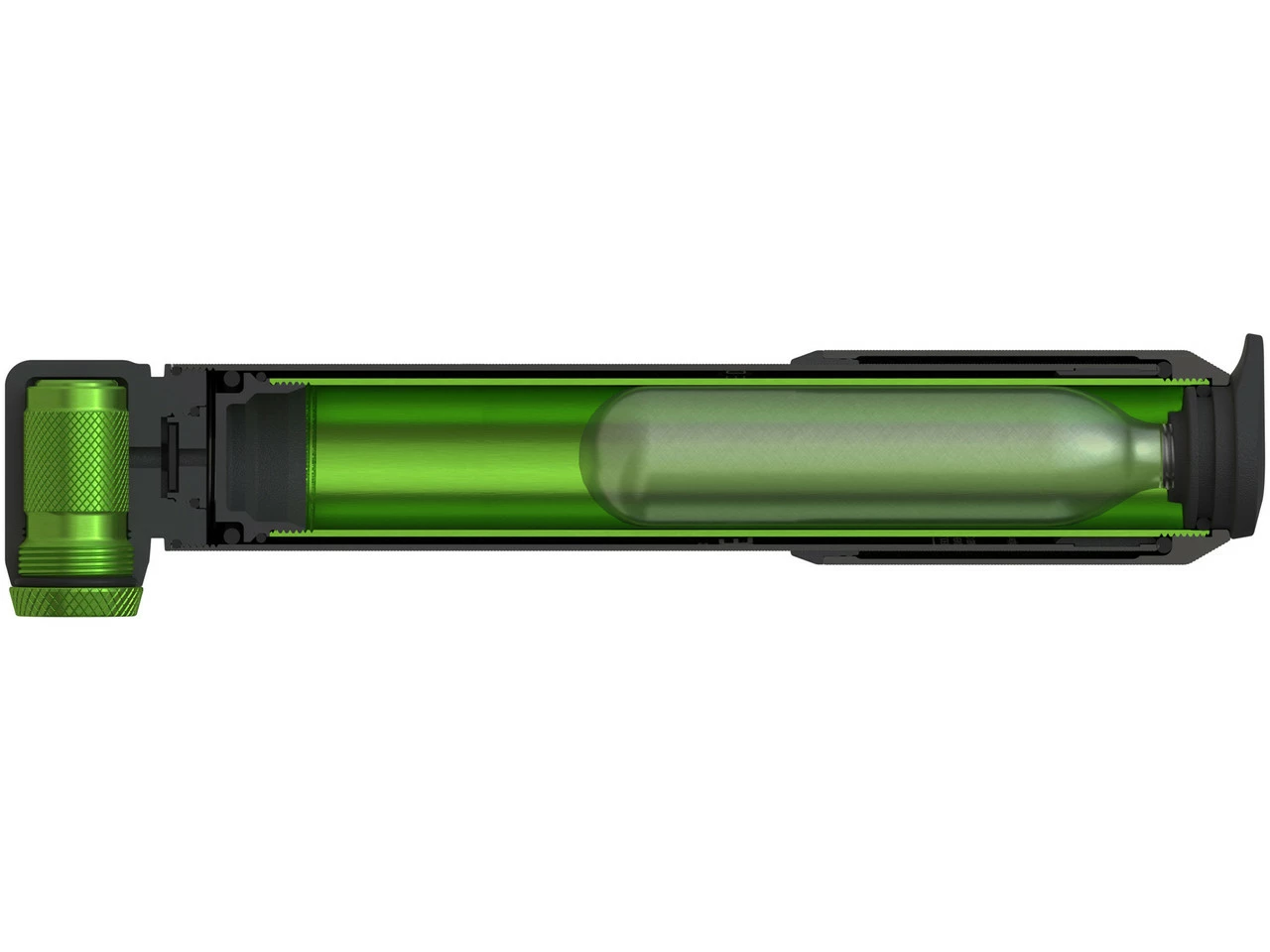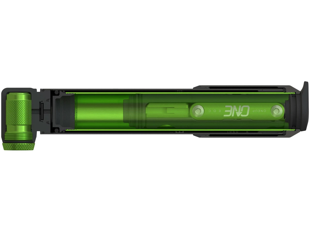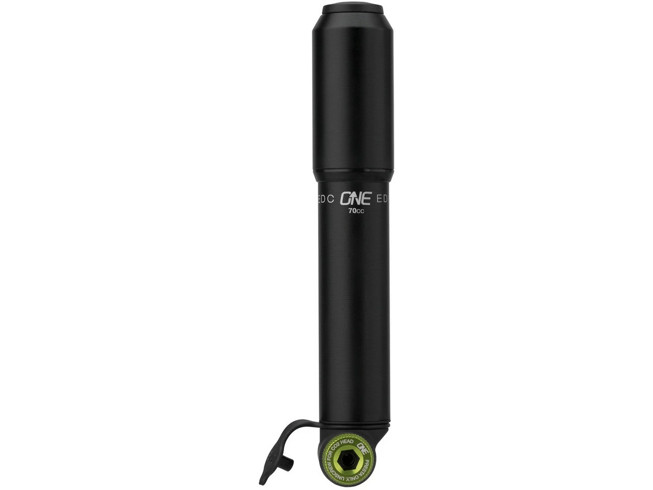 La bomba EDC 70cc de OneUp Components es una mini bomba con 70 centímetros cúbicos de volumen de aire, que genera una presión máxima de 3,5 bares y es compatible con las válvulas Presta. Al mismo tiempo, es una opción si no desea colocar la EDC Tool o EDC V2 Tool en el tubo de dirección. Dispone de una cavidad en el asa en la que cabe el juego de herramientas Everyday Carry que incluye una pequeña cápsula de almacenamiento. También puedes almacenar un cartucho deCO2 en lugar del sistema de herramientas. La cabeza de la bomba en el otro extremo puede ser removida, permitiendo el uso del 70cc como inflador CO2.