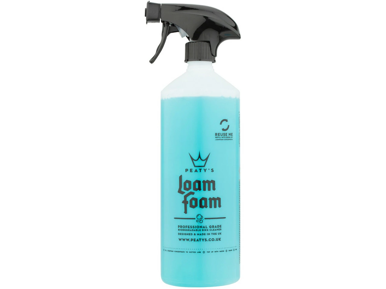 ¡El Loam Foam Bike Cleaner de Peaty’s es un limpiador universal de uso profesional que acaba con la suciedad de tu bicicleta! El limpiador es biodegradable y puede utilizarse en todas las superficies de la bicicleta, incluidos los discos y las pastillas de freno. No es necesario rociar la bici con agua de antemano Basta con aplicar generosamente Peatys Loam Foam en toda la superficie de la bici, esperar de 3 a 5 minutos y rociar con agua. La suciedad persistente o reseca puede abordarse con un cepillo suave rociando con agua a continuación.