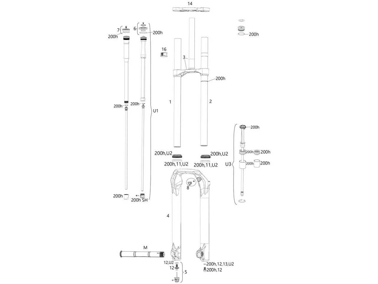 Kit de pernos de tubos para horquillas de suspensión Lyrik RCT3 (A1+) / RC (B1+) / RC2 (C1+, desde 2016) / Pike 29+ (2017) / BoXXer (C1+, desde 2019) / ZEB (A1, 2021), con perno de tubo y crush washers