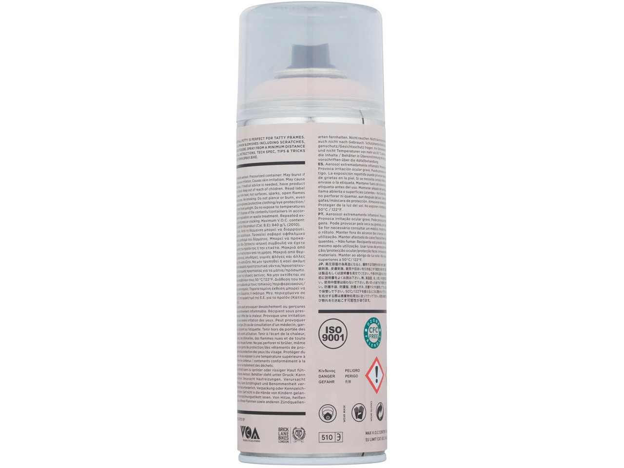 La masilla alisadora de Frame Builders de Spray.Bike es una práctica masilla en bote de spray que cubre perfectamente. Es perfecta para cuadros de bicicleta desgastados y ligeramente dañados hechos de acero, aluminio o carbono.