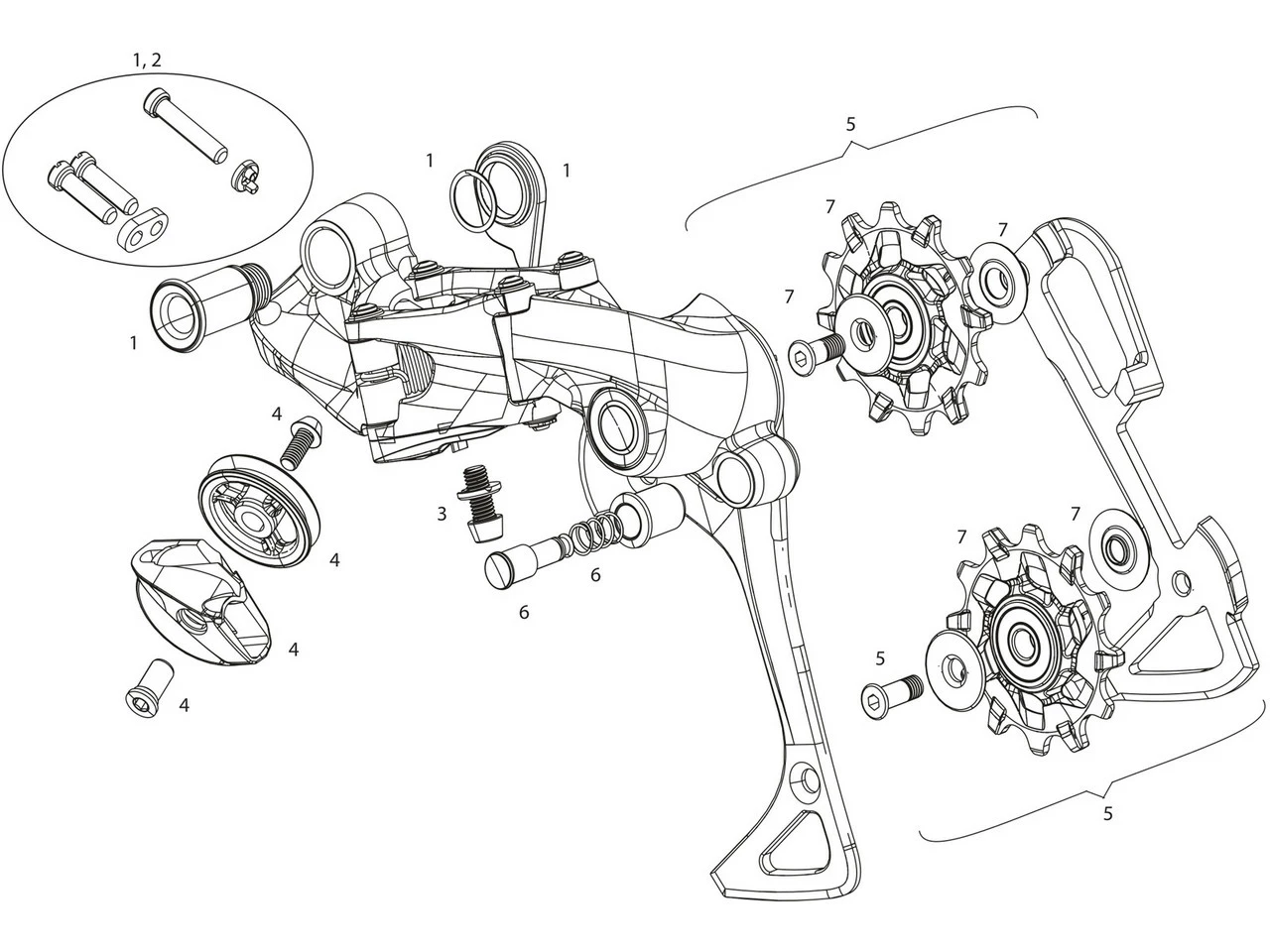 Set de tornillos de fijación para sistemas de cambios de 7 velocidades X01DH, sin tornillos de ajuste (No. 2)