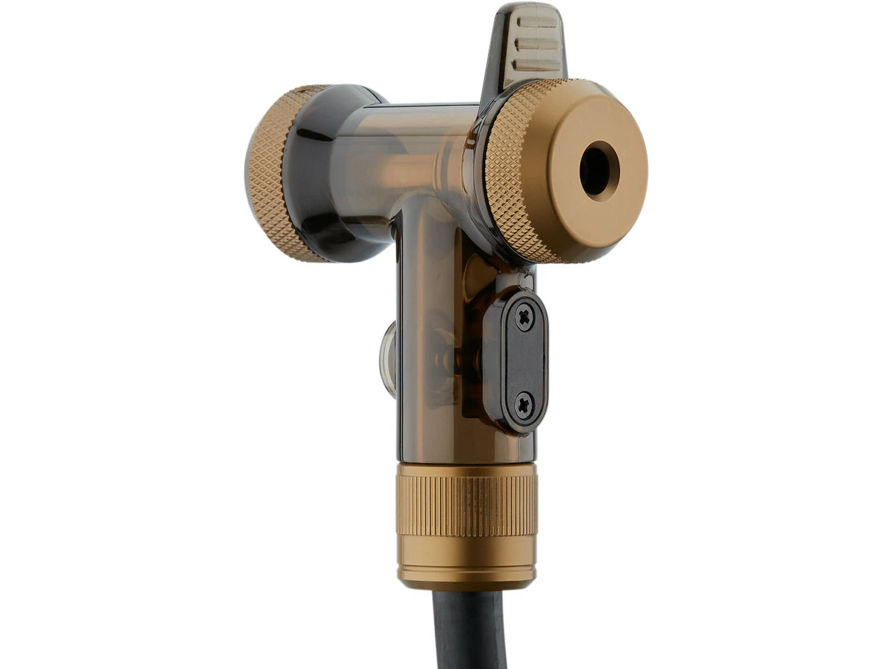 El Tubi-Head se cierra herméticamente con la válvula Presta. Con el Valve Core Knob integrado se desenrosca el núcleo de la válvula y se mantiene en el cabezal de la válvula. Después del inflado, el núcleo de la válvula se enrosca de nuevo en la válvula y sólo a partir de este momento se libera la presión. De este modo las cubiertas tubeless y de gran volumen en particular pueden se pueden inflar rápidamente y sin pérdida de presión.