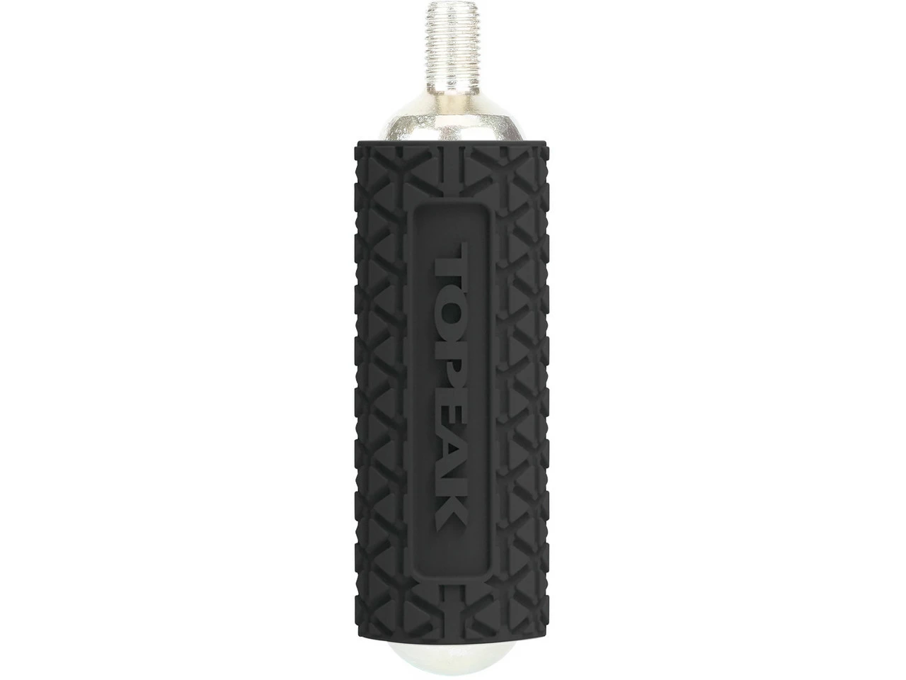 Funda protectora de silicona aislante y reutilizable para cartuchos de CO2 Topeak. Protege las manos contra el frío generado por el cartucho durante el proceso de inflado.