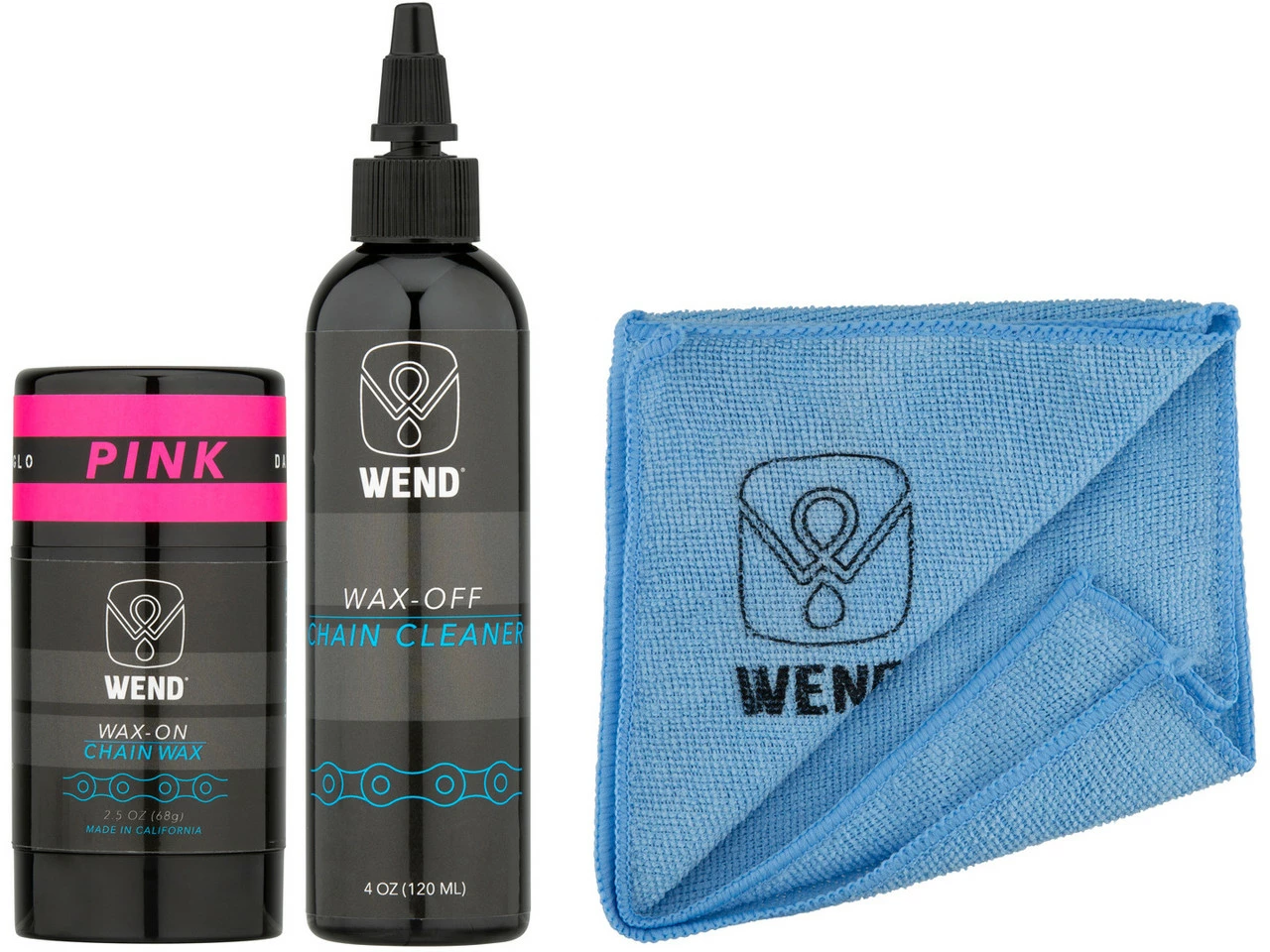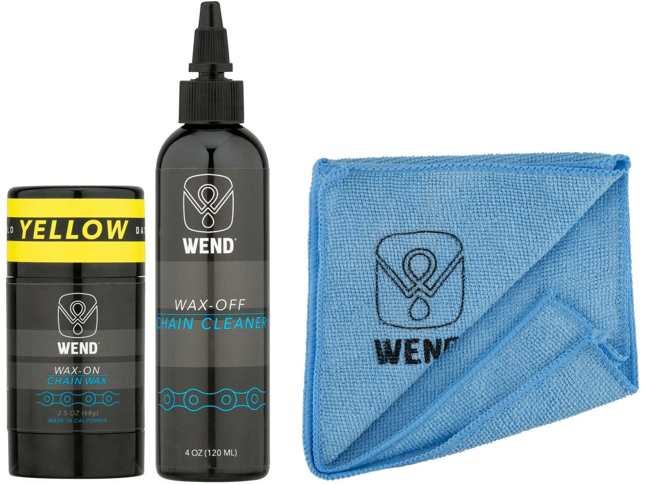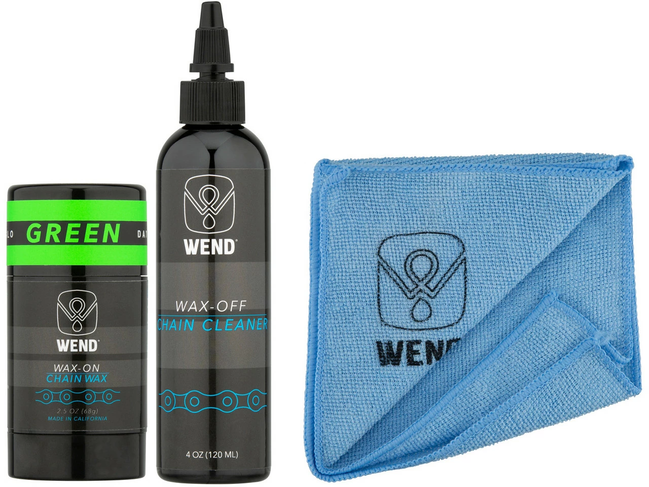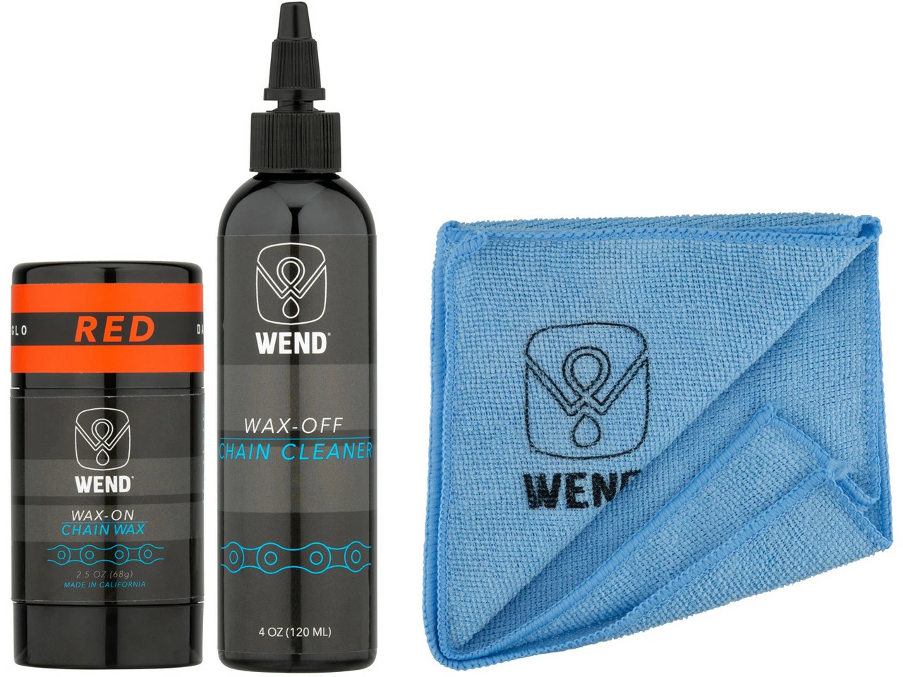 Limpiador de cadenas Wax-OFFCera para cadenas Wax-ONNúmeros de fabricante:blue:WWWOWOBLgreen:WWWOWOGorange:WWWOWOOrosa:WWWOWOPred:WWWOWORyellow:WWWOWOYpurple:WWWOWOPLVolumen de envío:1 x 120 ml limpiador de cadena WEND Wax Wax-OFF1 x 80 ml de cera para cadenas de colores WEND Wax Wax-ON Spectrum Colors1 x Paño de microfibra